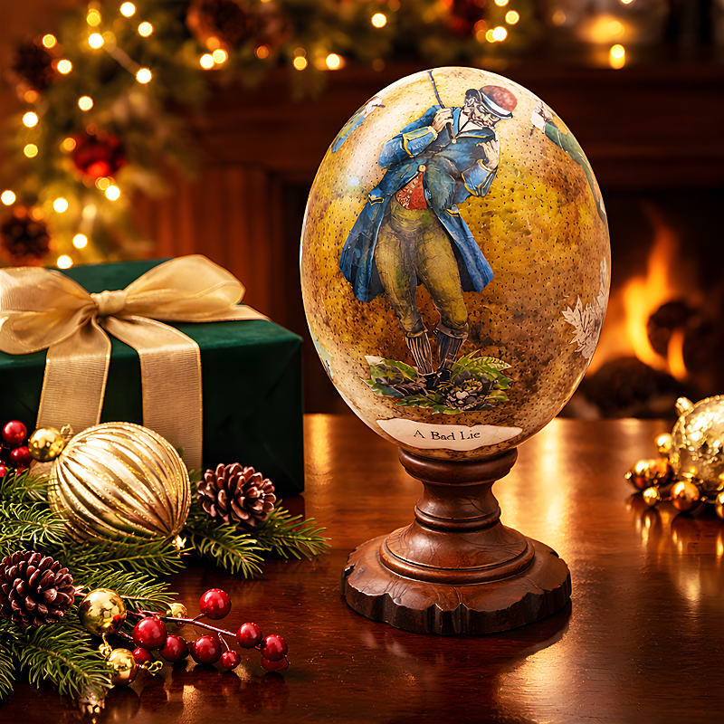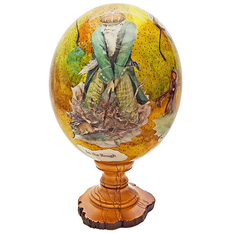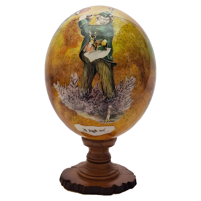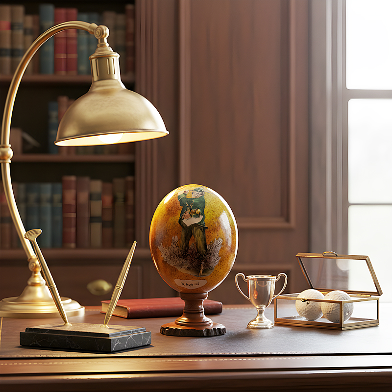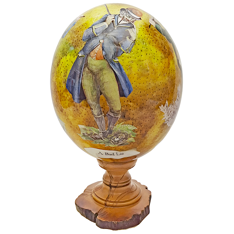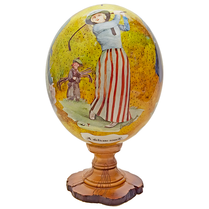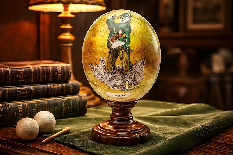 Golfer Tricks Ostrich Egg on Olive Wood Stand