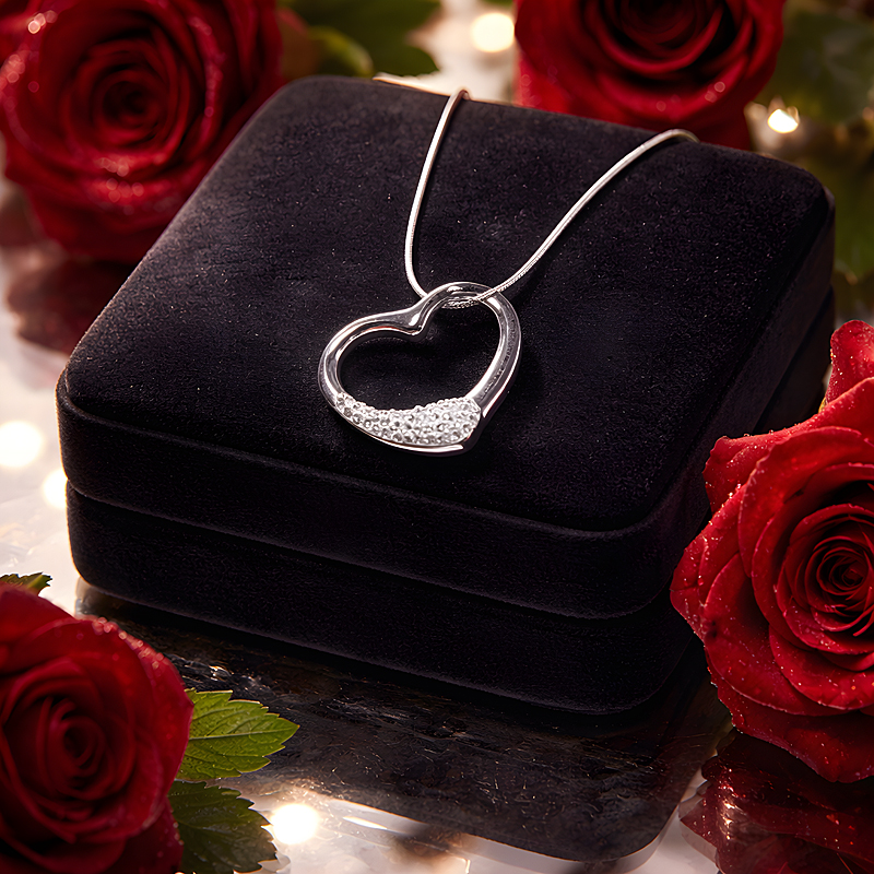 Sterling Silver Floating Heart Pendant with Embedded Stones